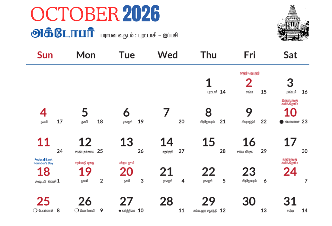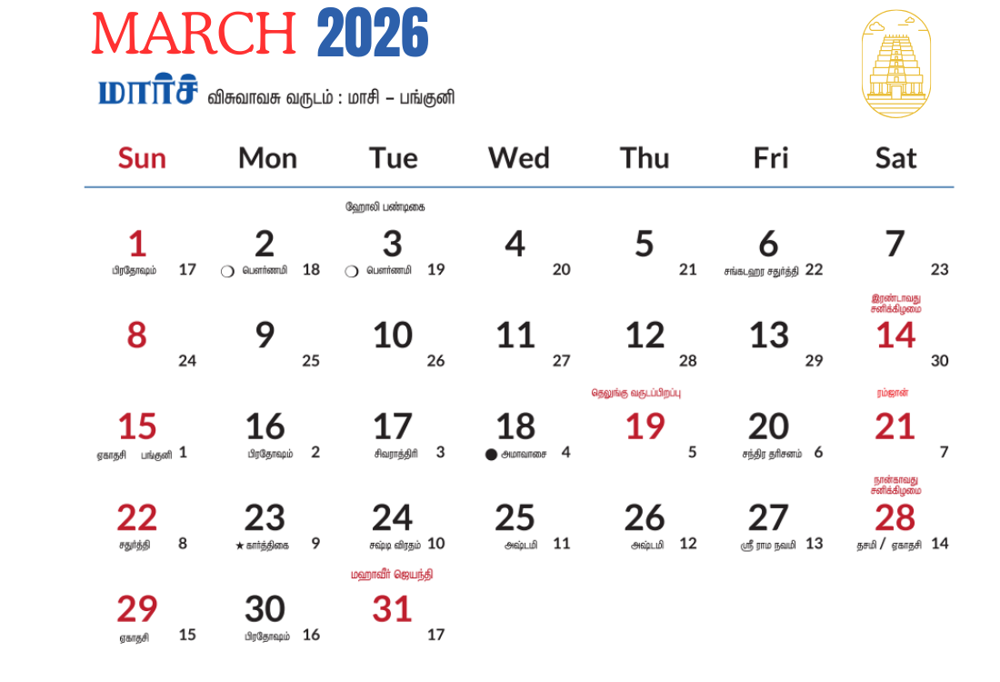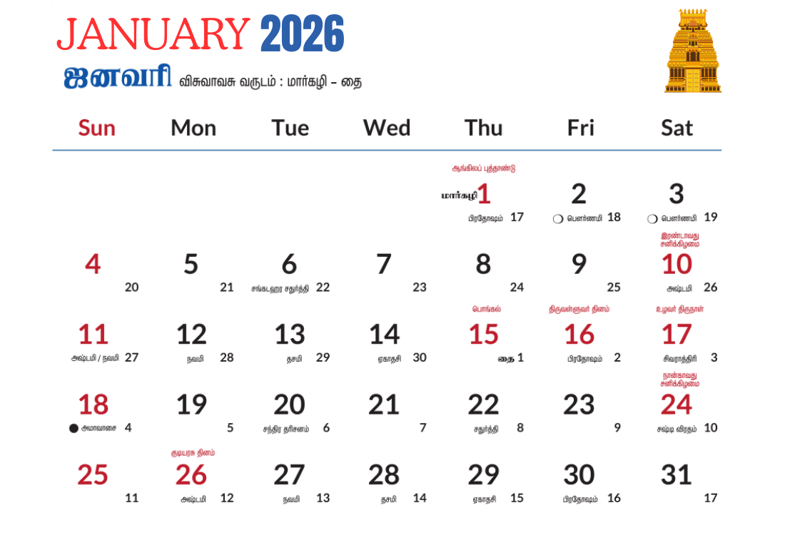 Tamil Calendar 2026 Downloadதமிழ் மாத காலண்டர் 2026